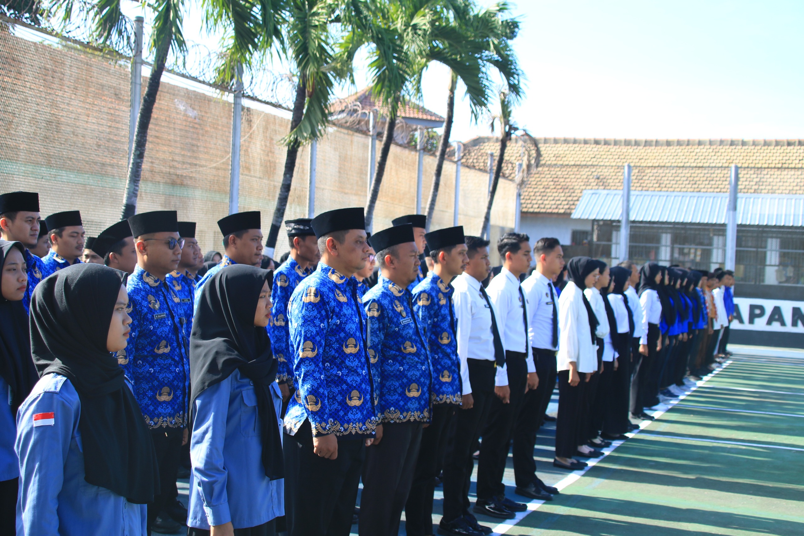 Lembaga Pemasyarakatan (Lapas) Kelas IIA Banyuwangi memperingati Hari Ulang Tahun Korps Pegawai Republik Indonesia (KORPRI) ke-54 Tahun 2025, dengan menggelar upacara bendera yang khidmat, Senin (1/12/2025).