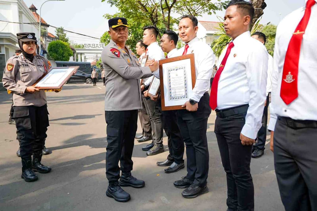 Anggota Satres Narkoba Polrestabes Surabaya mendapatkan penghargaan usai berhasil menangkap empat kurir yang terafiliasi dengan jaringan narkotika antar pulau. Penghargaan itu, diberikan langsung oleh Kapolrestabes Surabaya Kombes Pol Luthfie Sulistiawan.