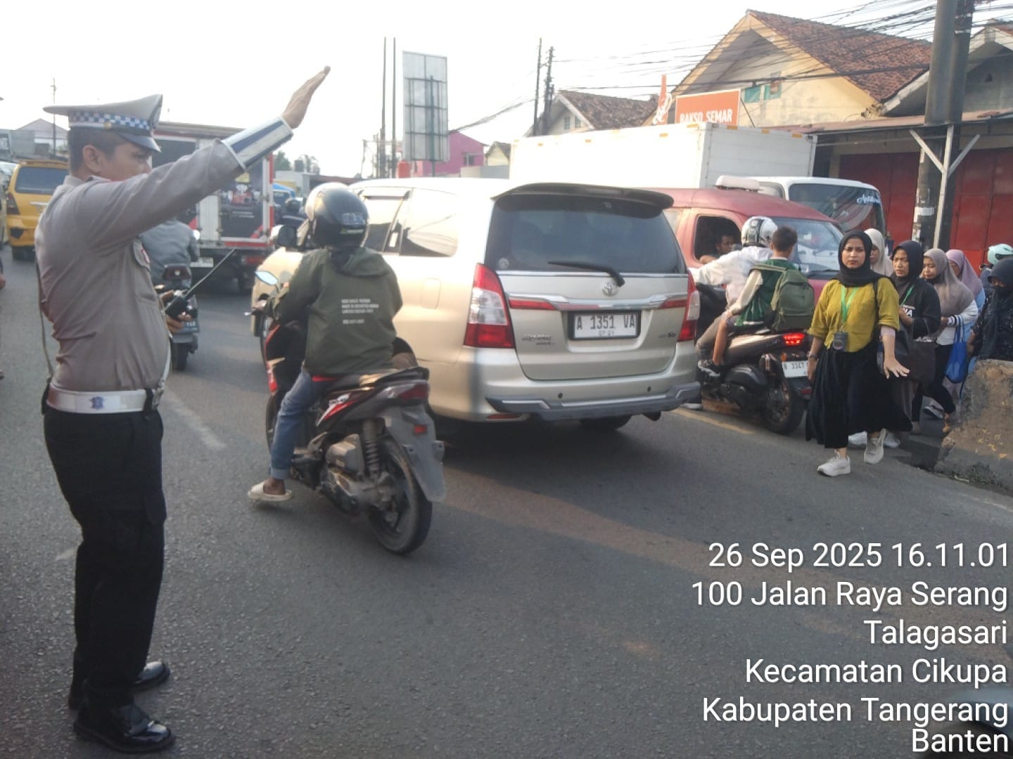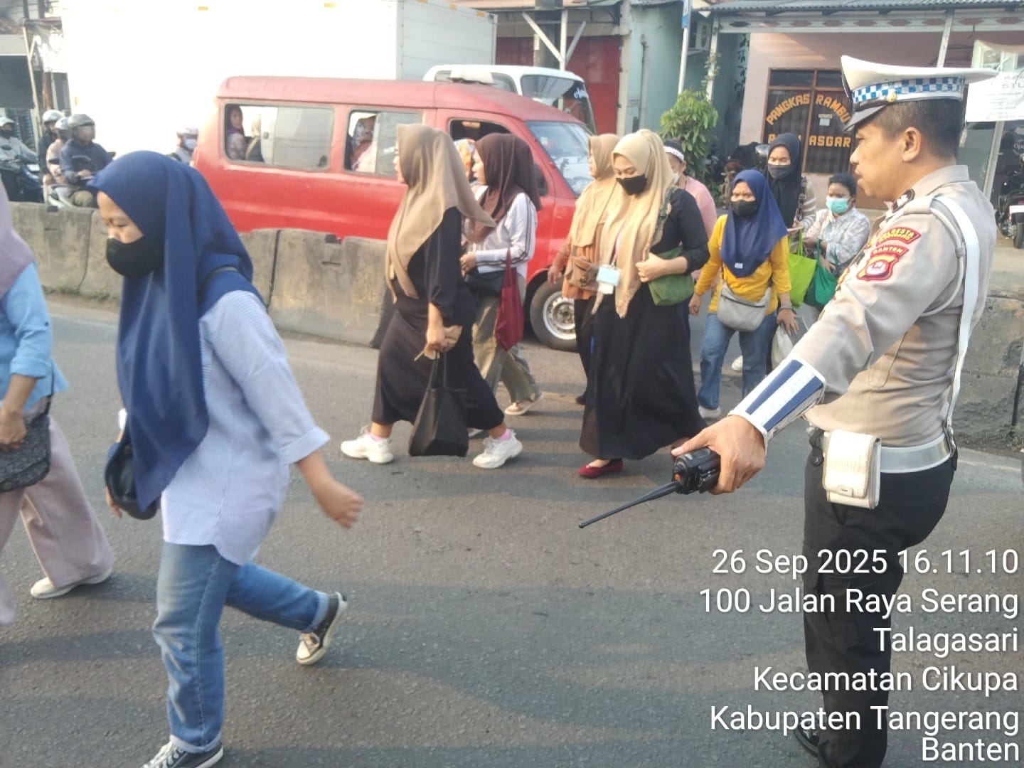 Kegiatan berlangsung pada Jumat (26/9/2025) pukul 15.30 WIB hingga 18.00 WIB di Jalan Raya Serang, tepatnya di Pertigaan Columbus PT. Cingluh, wilayah hukum Polsek Cikupa.