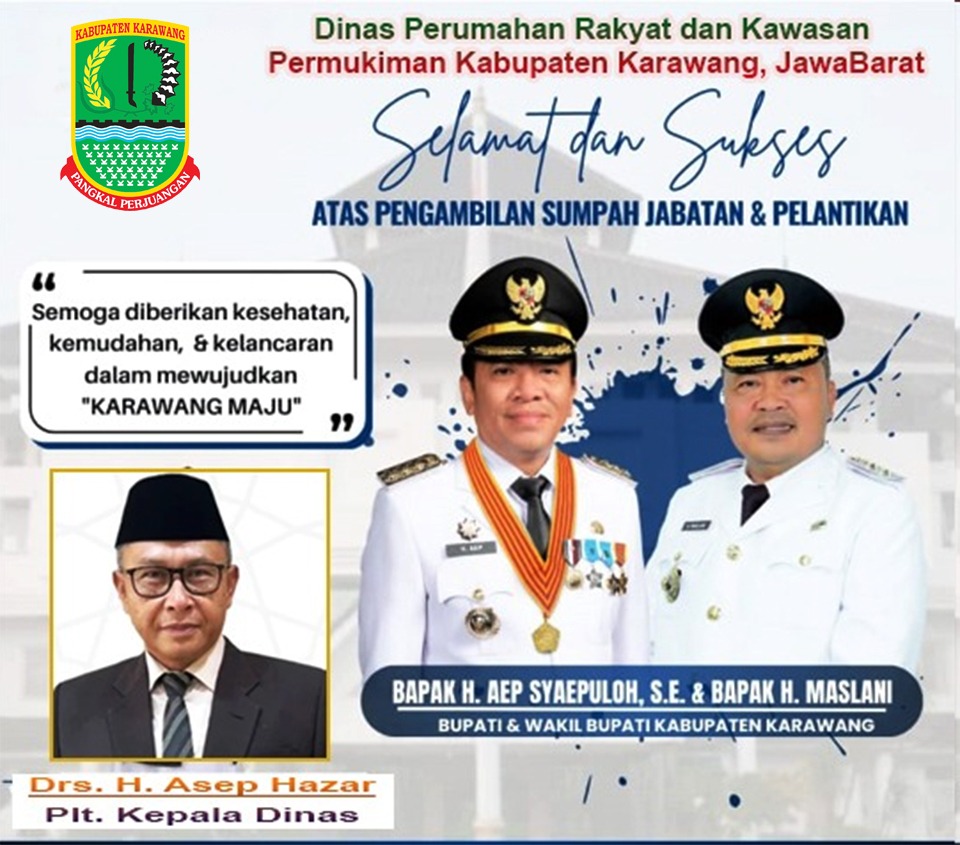 BerandaIKLANDinas Perumahan Rakyat dan Kawasan Pemukiman Kabupaten Karawang: Selamat atas Pelantikan Bapak Bupati dan Wakil Kabupaten Karawang, H. Aep Syaepuloh, SE & H. Maslani