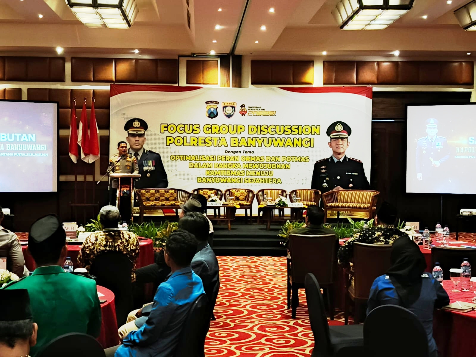 Polresta Banyuwangi menggelar Focus Group Discussion (FGD) bertema “Optimalisasi Peran Ormas dan Potmas dalam Mewujudkan Kamtibmas Menuju Banyuwangi Sejahtera”, Rabu (3/12/2025).