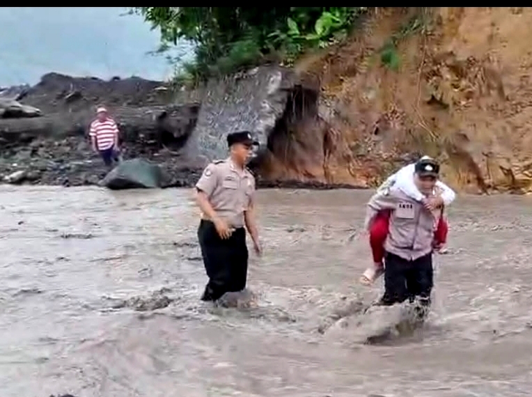 Kepedulian dan respons cepat Polri kembali ditunjukkan dalam membantu masyarakat di tengah kondisi alam yang ekstrem. Anggota Polsek Candipuro, Polres Lumajang, turun langsung membantu para pelajar dan warga menyeberangi derasnya aliran lahar dingin di Sungai Regoyo, Desa Jugosari, Kecamatan Candipuro, Kabupaten Lumajang Jawa Timur, Selasa (24/2/2026) pagi.