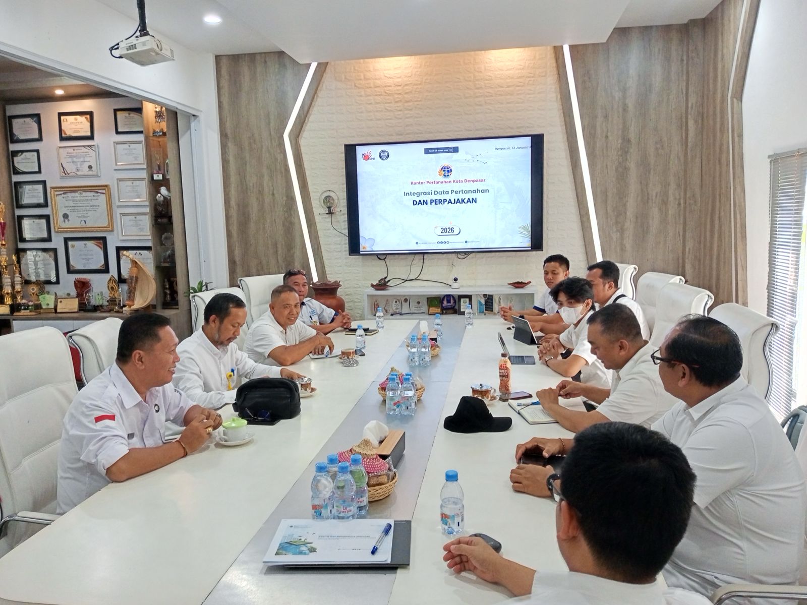 Dalam rangka studi banding implementasi integrasi data pertanahan dan perpajakan melalui Sistem Penghubung Layanan Pemerintah (SPLP), jajaran Kantor Pertanahan Kabupaten Tabanan beserta jajaran melakukan kunjungan kerja ke Denpasar pada Selasa, 14 Januari 2026.