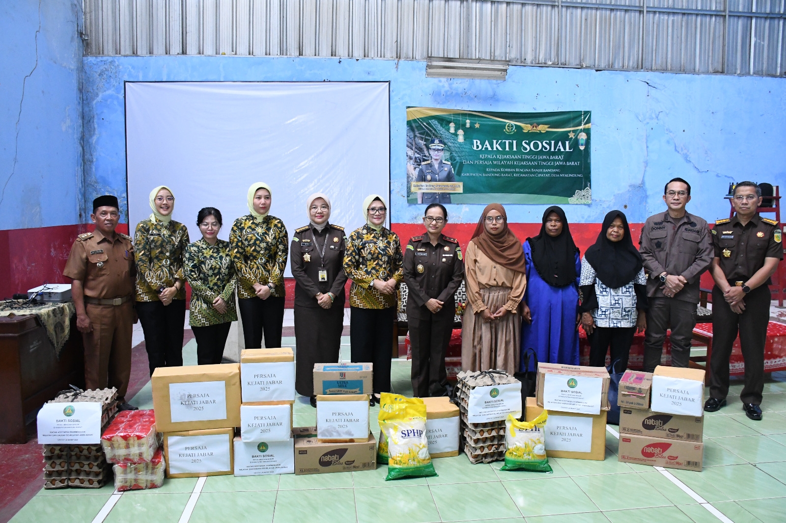 Kajati bersama Ketua Persaja Kab. Bandung juga memberikan bantuan berupa sembako, makanan siap santap dan susu. Kajati berharap dengan bantuan ini dapat bermanfaat dan meringankan para korban terdampak banjir.