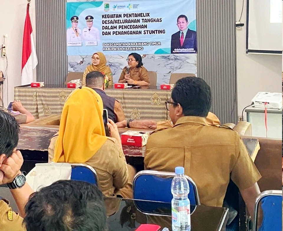 Karawang juga mengembangkan pendekatan Pentahelix Desa/Kelurahan Tangkas Stunting, yakni model kolaborasi yang melibatkan pemerintah, masyarakat, dunia usaha, media, serta akademisi. Program ini awalnya dimulai di lima desa lokus stunting dan kini telah diperluas ke seluruh desa dan kelurahan yang menjadi wilayah prioritas penanganan stunting.