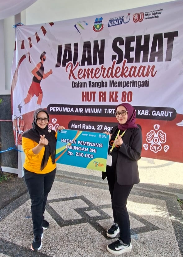 Puncak peringatan Hari Ulang Tahun Kemerdekaan Republik Indonesia (HUT RI) ke-80, Ratusan Karyawan PDAM Garut bersama jajaran direksi turut serta dalam kegiatan jalan sehat.