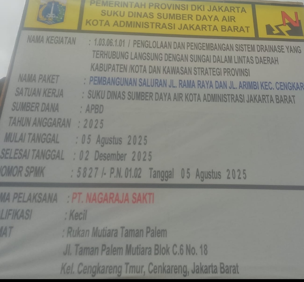 Terkait papan proyek (banner) pekerjaan proyek drainase Suku Dinas Sumber Daya Air (SDA) Kota Administrasi Jakarta Barat di sejumlah lokasi menuai pertanyaan dan sorotan dari masyarakat dan berbagai pihak, termasuk para pelaku kontrol sosial.