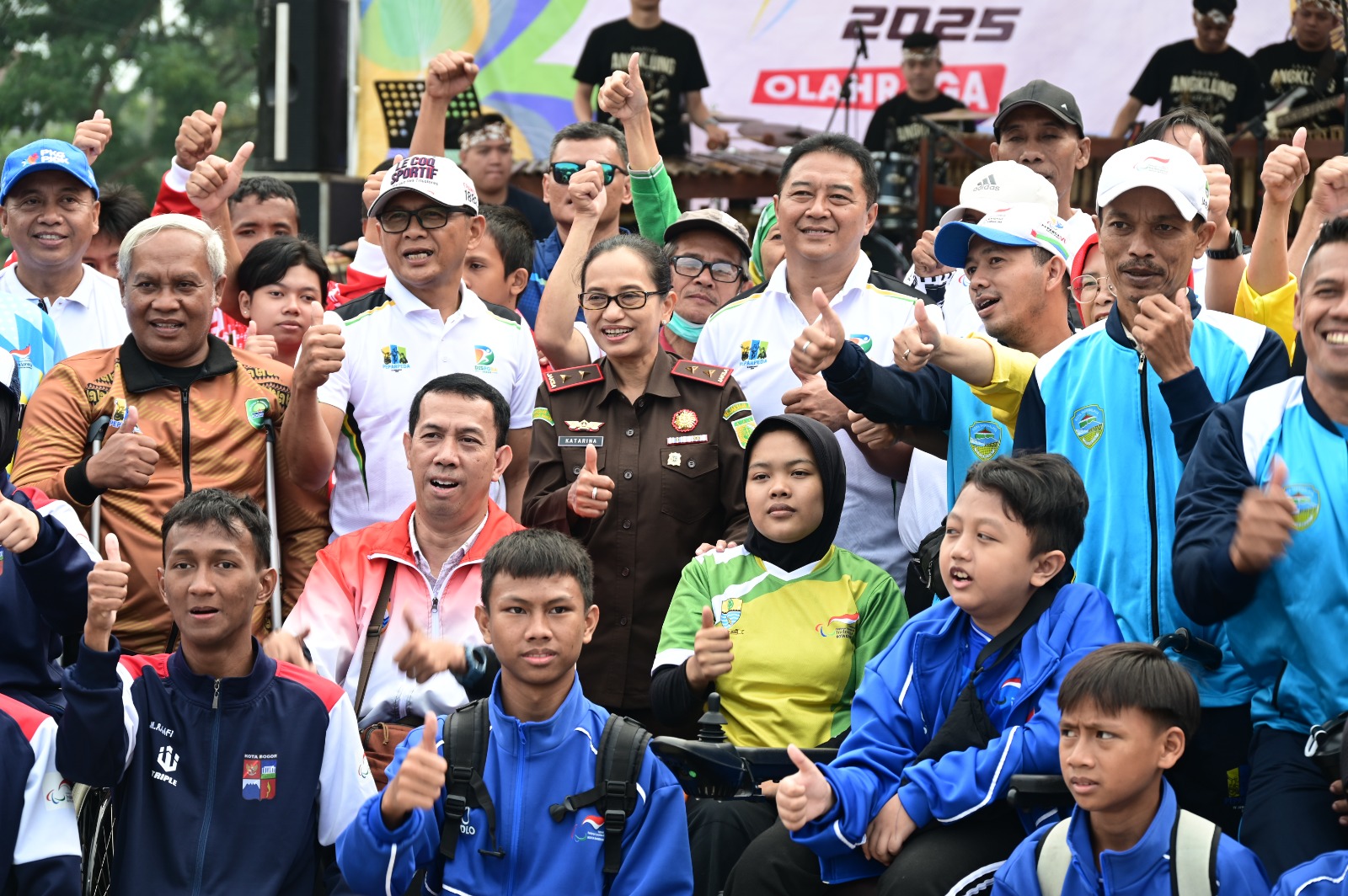 Kajati Jabar Katarina Endang Sarwestri dalam memperingati Hari Olahraga Nasional tahun 2025, menghadiri kegiatan pembukaan Pekan Paralimpik Daerah Jawa Barat yang diselenggarakan di Area Sport Jabar Arcamanik Kota Bandung pada Selasa 30 September 2025.