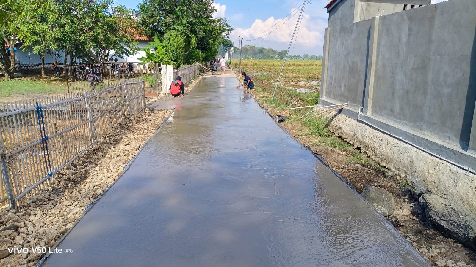 Salah satu kegiatan yang dilakukan adalah pembangunan jalan beton ready mix di Gang Karangkletak Rt.013 dengan volume panjang 167 meter, lebar 2,5 meter, dan ketinggian 0,15 cm.