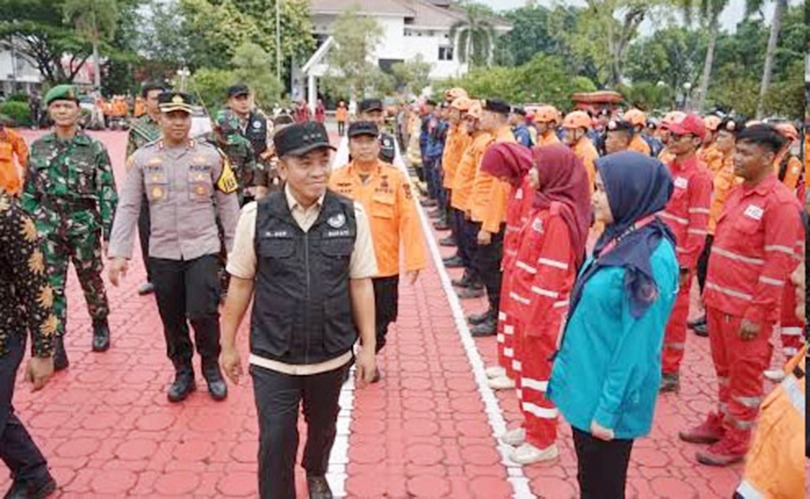 Pemerintah Kabupaten Karawang menggelar apel Siaga Darurat Bencana Banjir, Banjir Bandang, Cuaca Ekstrem, Gelombang Ekstrem dan Abrasi serta Tanah Longsor di wilayah Kabupaten Karawang Tahun 2025/2026 yang dilaksanakan di Plaza Pemda, Kamis (27/11/2025).