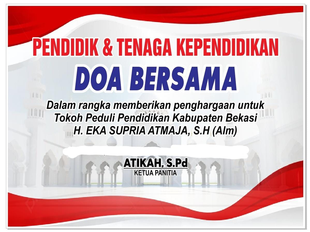 Atikah selaku Koordinator Panitia Doa bersama, Kepada Almarhum Eka Supria Atmaja, SH. Ia mengucapkan terima kasih atas kesediaan dan kehadiran temann-teman FPHI dan KOMPETEN dalam doa bersama dan pemberian penghargaan kepada Almarhum H Eka Supria Atmaja, SH. sebagai Tokoh Peduli Pendidikan Kabupaten Bekasi.