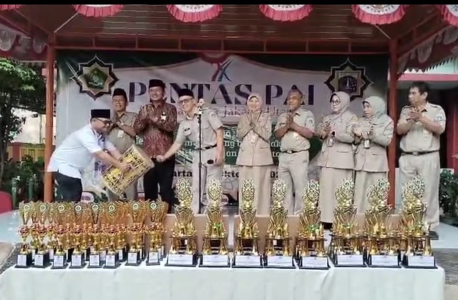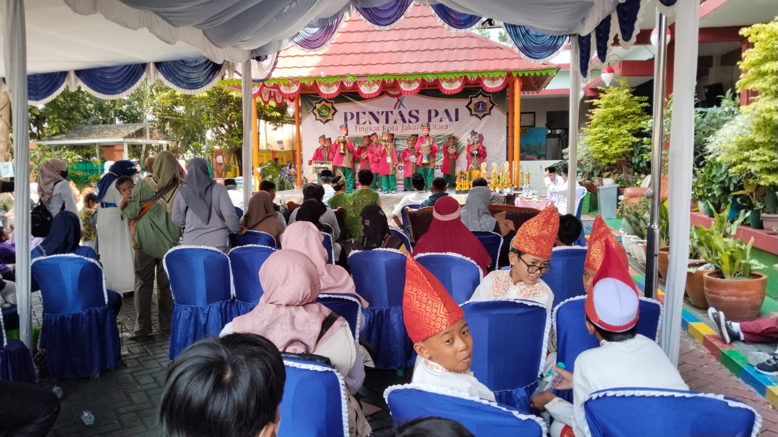 Kasie SD Jakarta Utara 2 Mukhari mewakili Kasudin JU1 ibu Rona didampingi Kasei SD JU1 Kuriah, Kasei KanKemenag, Kasaklak, Pengawas SD, K3S, dan Panitia membuka Pentas Agama Islam /PAI Tingkat Sekolah Dasar se-Jakarta Utara di SDN Warakas 01 Tanjung Priok, Jakarta Utara, (14/10/2025).