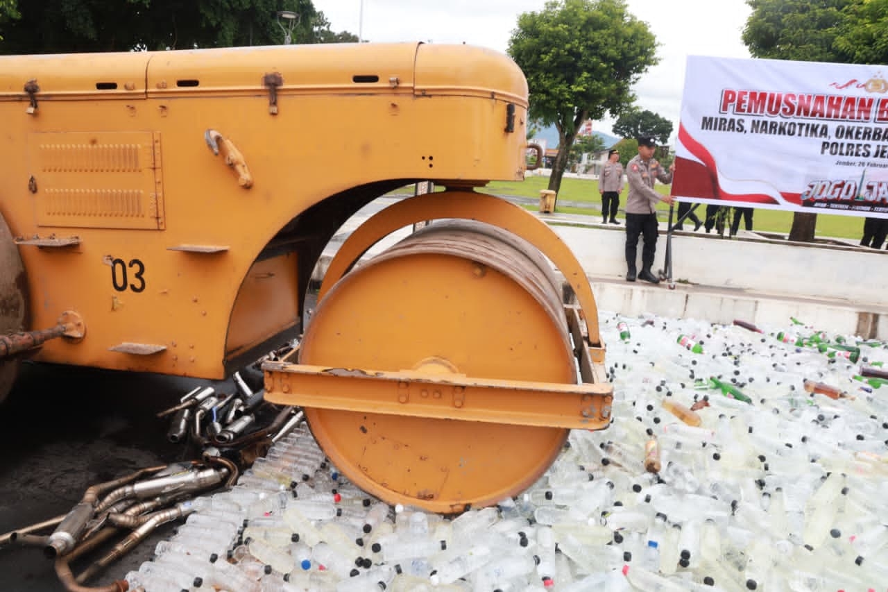 Komitmen menjaga kekhusyukan ibadah di Bulan Suci Ramadan 1447 H terus ditegaskan. Polres Jember bersama jajaran Forum Koordinasi Pimpinan Daerah (Forkopimda) Kabupaten Jember memusnahkan ribuan botol minuman keras, narkotika, hingga knalpot tidak sesuai spesifikasi hasil Operasi Penyakit Masyarakat (Pekat), Kamis (19/2/2026).