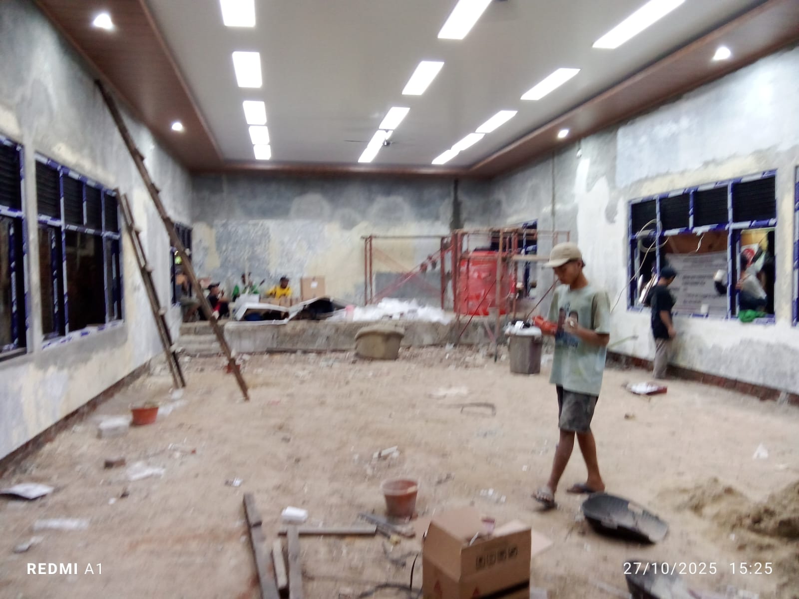 “Insyaallah tidak sampai Desember sudah selesai. Renovasi ini total, mulai dari panggung, plafon, lantai granit ukuran 60×60, closet, hingga peninggian bangunan sekitar 20 cm. Luas bangunan mencapai lebih dari200 meter persegi,” terang Syahril.