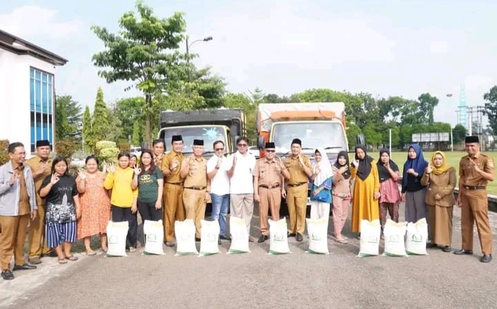 Sekretaris Daerah (Sekda) Kabupaten Musi Rawas H. Ali Sadikin Memberikan simbolis bantuan dan pelepasan penyaluran bantuan pangan tahun 2025 di halaman Kantor Bupati Musi Rawas, Selasa (22/07/2025).