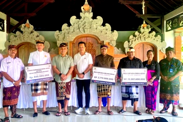 Selain itu, BKK untuk Desa Adat se-Kabupaten Jembrana dialokasikan sebesar Rp13.307.600.000, mencakup dukungan operasional kelembagaan adat, kesejahteraan prajuru adat, pecalang, hingga penghargaan tokoh umat. Insentif bagi 231 Kelian Subak diberikan sebesar Rp1.000.000 per bulan dengan total anggaran Rp2.772.000.000.
