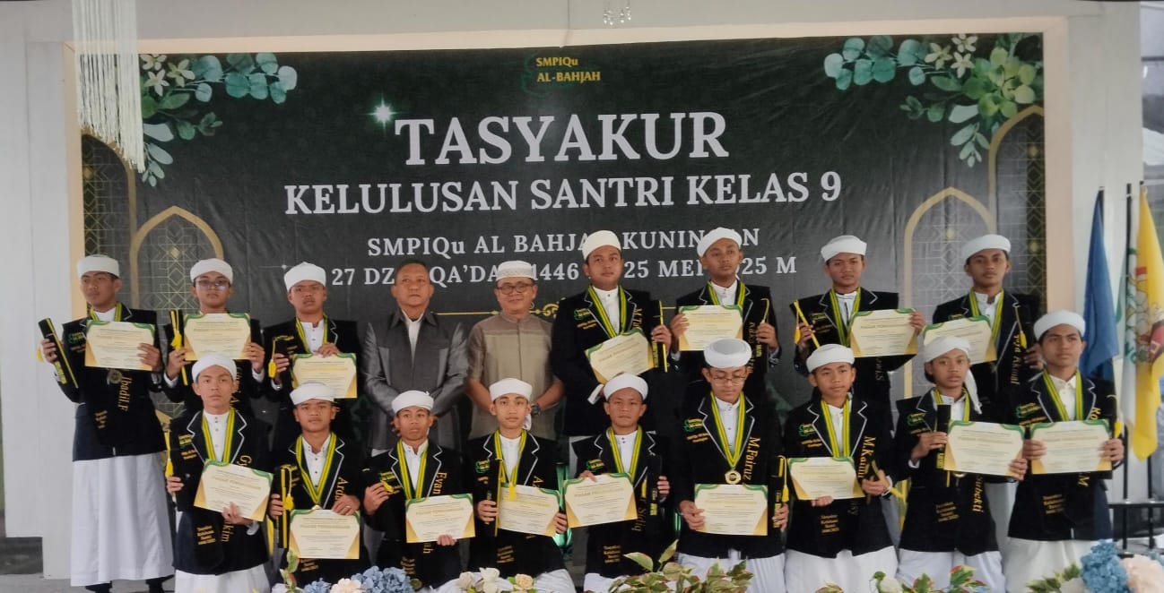 Sebanyak 75 Santri kelas 9 SMPQu Al-Bahjah Kuningan melaksanakan Tasyakur Kelulusan santri Tahfidz & Tafaqquh sebagai bentuk penghormatan bagi para santri yang telah menyelesaikan perjalanan ilmu mereka di bidang Tahfidz dan Tafaqquh.