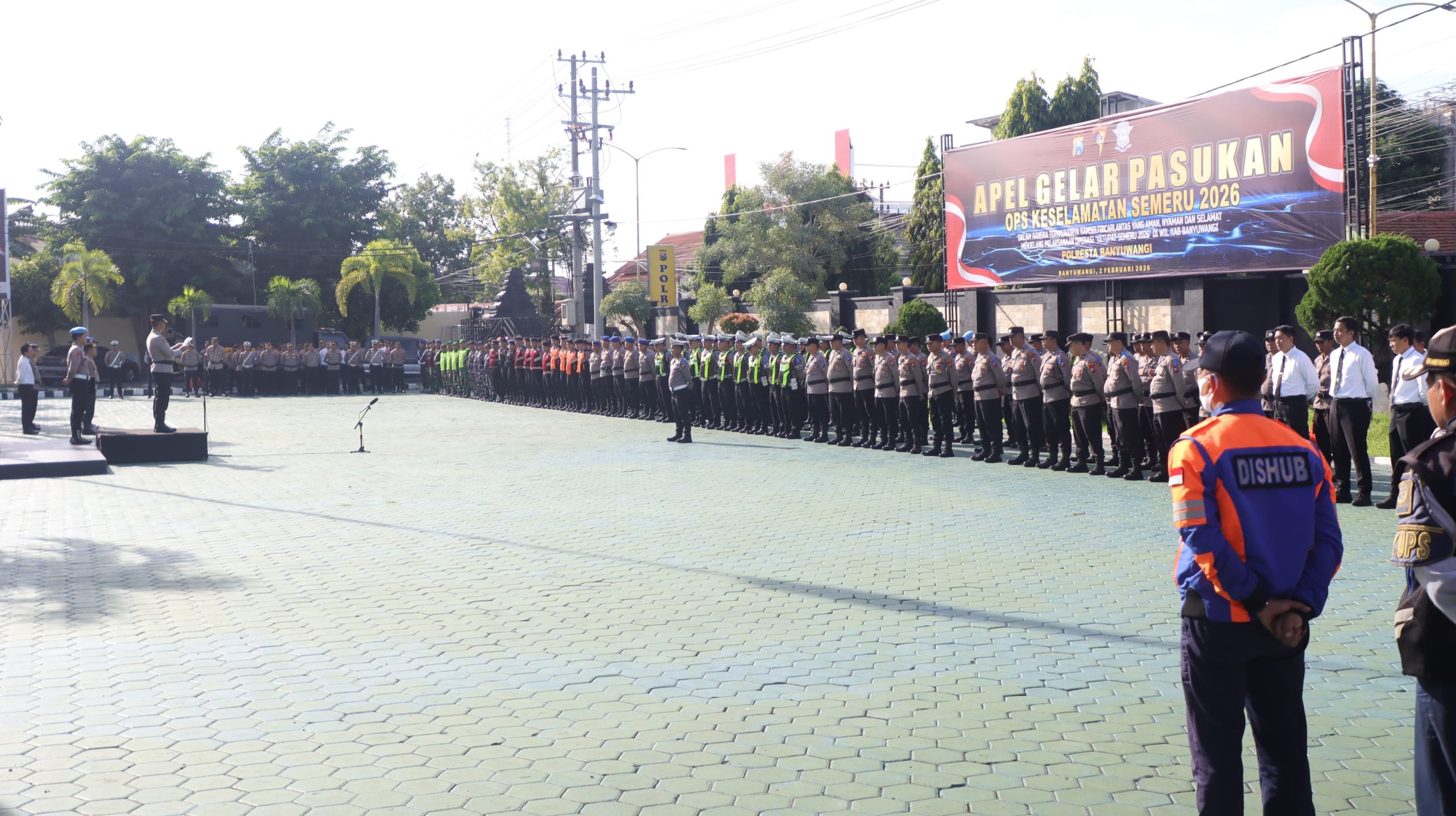 Polresta Banyuwangi menggelar Apel Gelar Pasukan Operasi Keselamatan Semeru 2026, Senin (2/2/2026), sebagai wujud kesiapan dalam menciptakan keamanan, keselamatan, ketertiban, dan kelancaran lalu lintas (Kamseltibcarlantas) yang aman, nyaman, dan selamat di wilayah Kabupaten Banyuwangi.